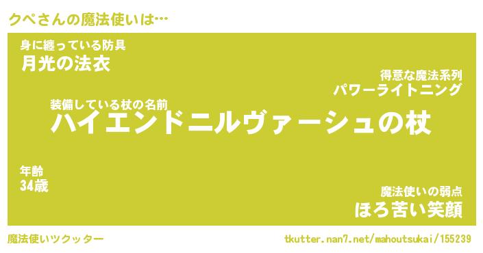 | ファンタジー風あだ名 | 『クペフェル』『エターナルクペー』 |