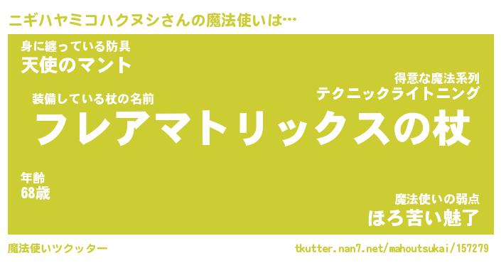 ニギハヤミコハクヌシさんの魔法使いをツクッター!