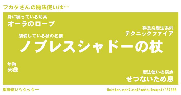 | ファンタジー風あだ名 | 『フカフェル』『エターナルフカター』 |