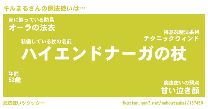| ファンタジー風あだ名 | 『キルフェル』『エターナルキルマルー』 |
