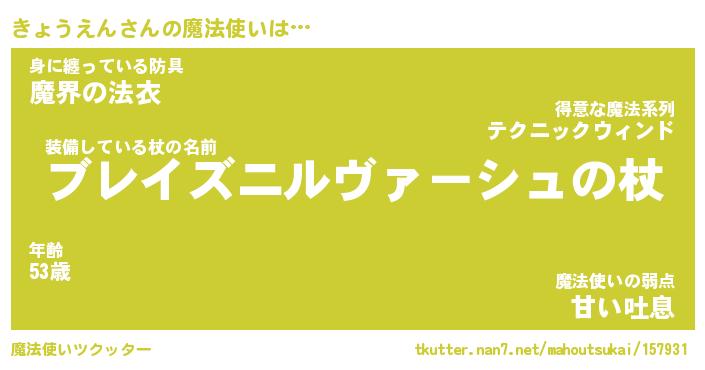 | ファンタジー風あだ名 | 『キョフェル』『エターナルキョウエンー』 |