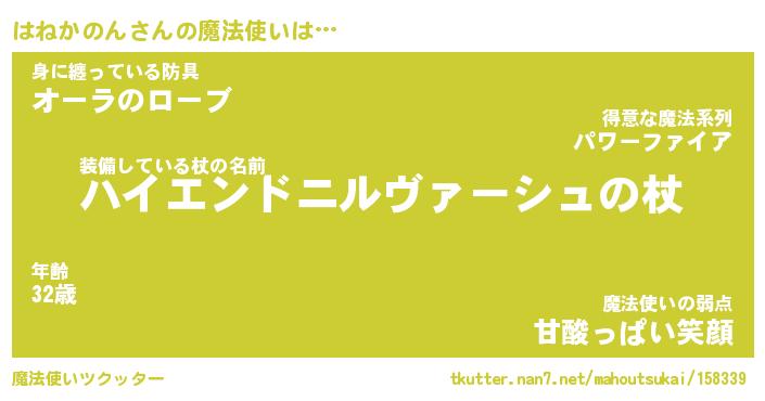 | ファンタジー風あだ名 | 『ハネフェル』『エターナルハネカノンー』 |