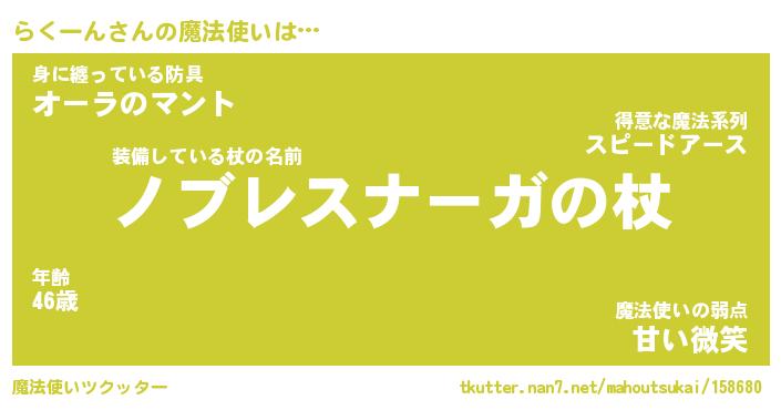 | ファンタジー風あだ名 | 『ラクフェル』『エターナルラクーンー』 |