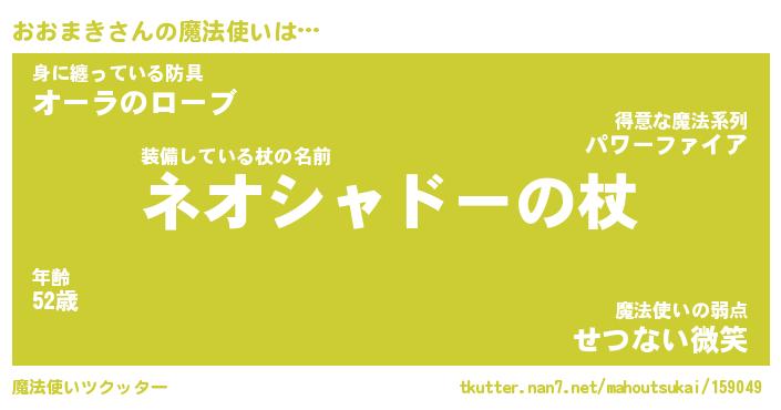 | ファンタジー風あだ名 | 『オオフェル』『エターナルオオマキー』 |
