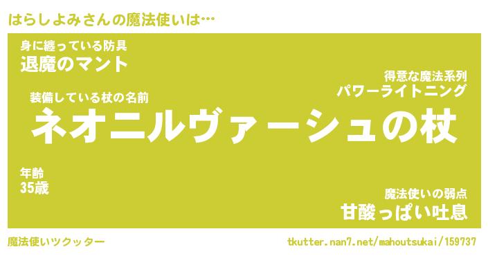 | ファンタジー風あだ名 | 『ハラフェル』『エターナルハラシヨミー』 |