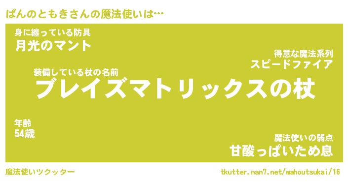 | 肩書あだ名 | 『ばんのともき社長』『ばんのともき班長』 |