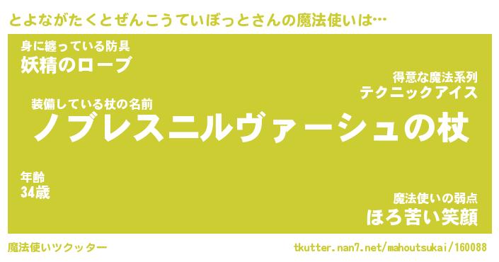 | ツイッター | とよながたくとぜんこうていぼっとさんのツイッターID『namakemono_nyan』 |
