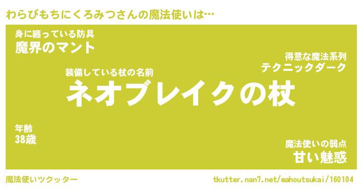 | ヒーロー風カッコイイあだ名 | 『スーパーワラビモチニクロミツ』 |