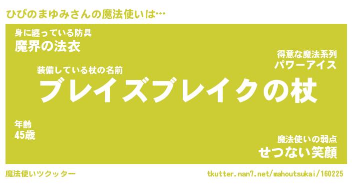 | ヒーロー風カッコイイあだ名 | 『スーパーヒビノマユミ』『天弓騎士ヒビ』 |