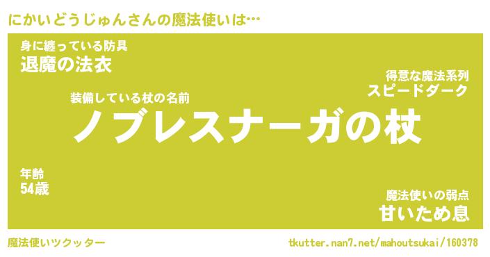 | 男性向けラノベタイトル風あだ名 | 『ニカイドウジュンアートオンライン』 |