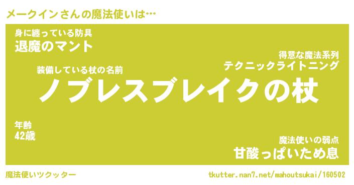 | 男性向けラノベタイトル風あだ名 | 『メークインアートオンライン』 |