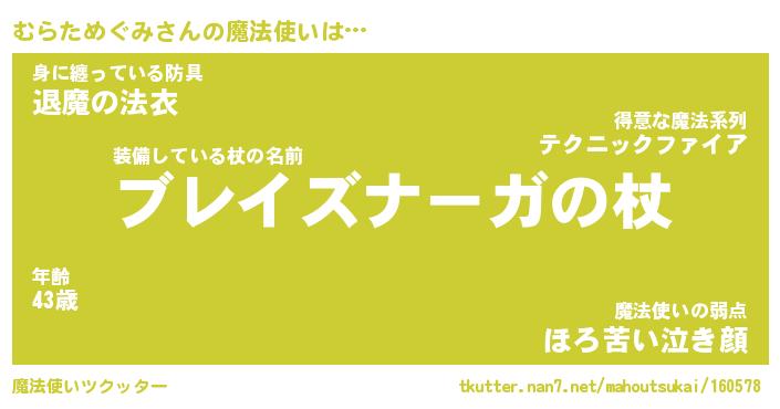 | ヒーロー風カッコイイあだ名 | 『スーパームラタメグミ』『天弓騎士ムラ』 |
