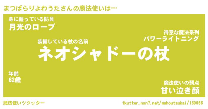 | 胡散臭い通販商品みたいなあだ名 | 『モテモテ間違いなしブレスレット…その名も「まつばらりよわうた」』 |
