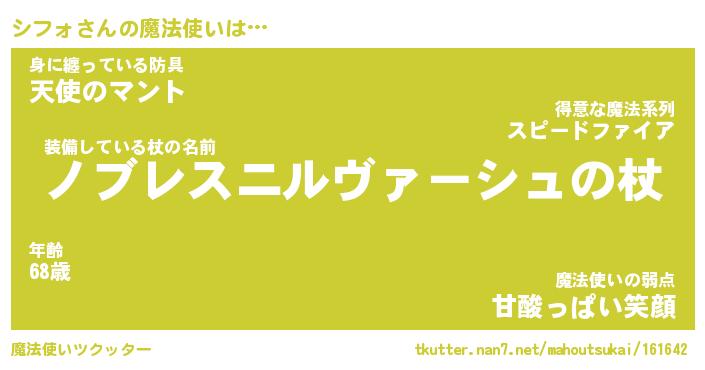 | 伝説のあだ名 | 『封印されしスナイパーシフォ』 |