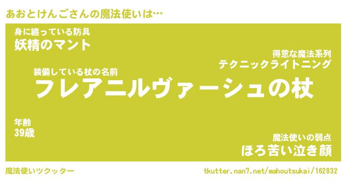 | ヒーロー風カッコイイあだ名 | 『スーパーアオトケンゴ』『幻影騎士アオ』 |