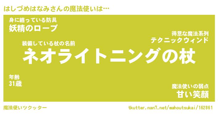 | 肩書あだ名 | 『はしづめはなみ店長』 |