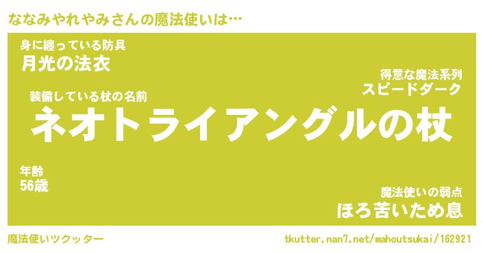 | 男性向けラノベタイトル風あだ名 | 『ナナミヤレヤミアートオンライン』 |