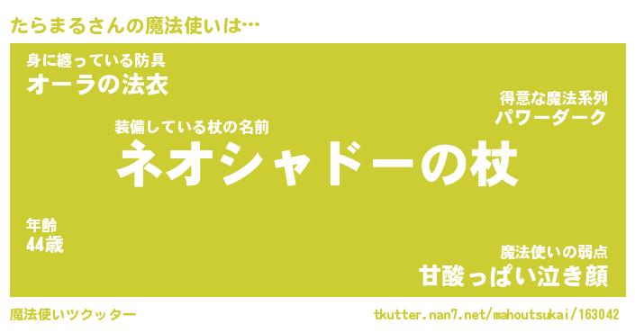 | ファンタジー風あだ名 | 『タラフェル』『エターナルタラマルー』 |