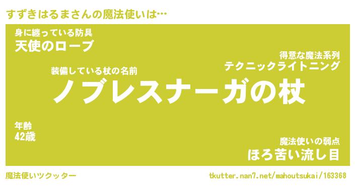 | ツイッター | すずきはるまさんのツイッターID『namakemono_nyan』 |