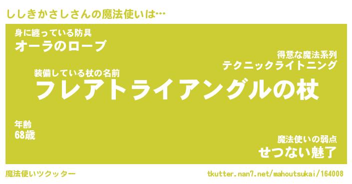 | ヒーロー風カッコイイあだ名 | 『スーパーシシキカサシ』『暗黒騎士シシ』 |