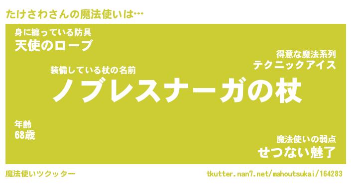 | ファンタジー風あだ名 | 『タケフェル』『エターナルタケサワー』 |