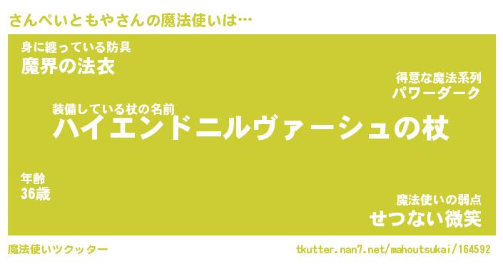 | 女子向けラノベタイトル風あだ名 | 『誰かこのさんぺいともやを説明してください! ~契約から始まるウェディング~』 |