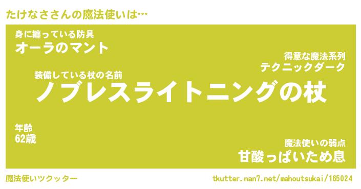 | ファンタジー風あだ名 | 『タケフェル』『エターナルタケナサー』 |