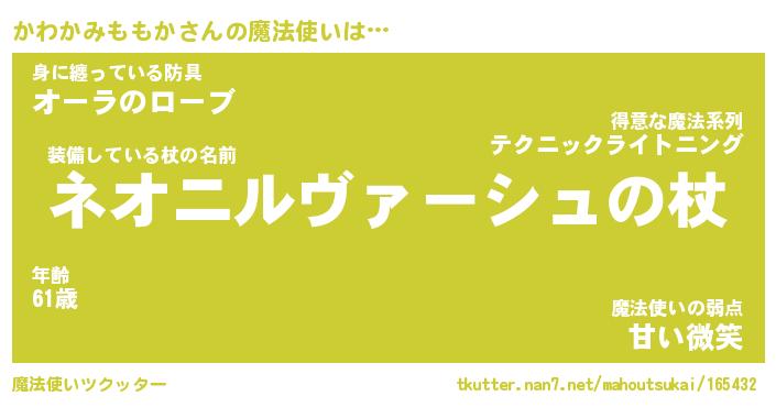 | 肩書あだ名 | 『かわかみももか御曹司』 |