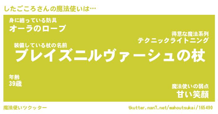 | ファンタジー風あだ名 | 『シタフェル』『エターナルシタゴコロー』 |