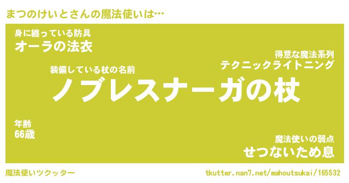 | 胡散臭い通販商品みたいなあだ名 | 『億万長者になれる霊験あらたかなお札…その名も「まつのけいと」』 |