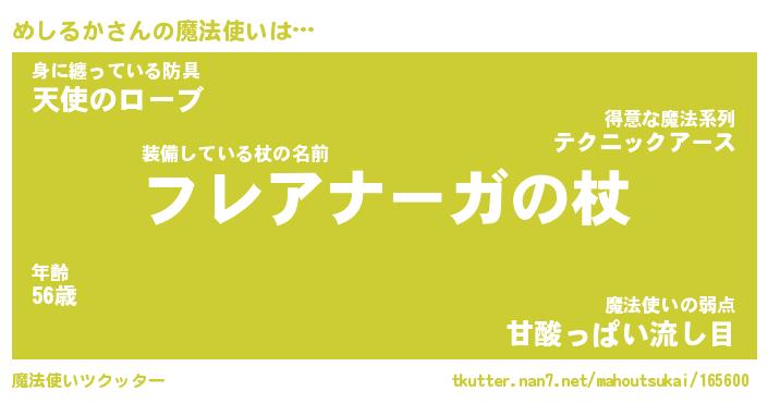 | 意味不明あだ名 | 『ペロリンめしるか』『永久保存めしるか』 |