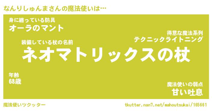 | 男性向けラノベタイトル風あだ名 | 『ナンリシュンマアートオンライン』 |