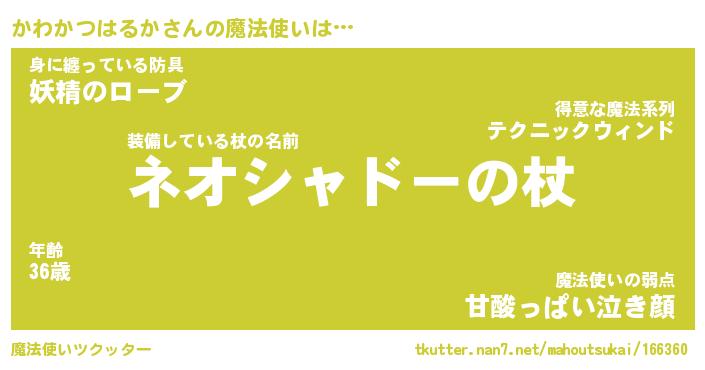 | 胡散臭い通販商品みたいなあだ名 | 『モテモテ間違いなしブレスレット…その名も「かわかつはるか」』 |