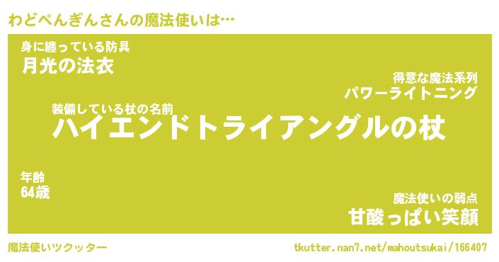 | 伝説のあだ名 | 『封印されしスナイパーわどぺんぎん』 |