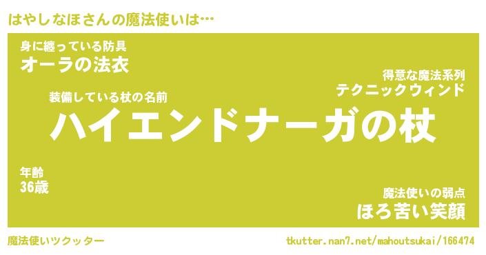 | ファンタジー風あだ名 | 『ハヤフェル』『エターナルハヤシナホー』 |