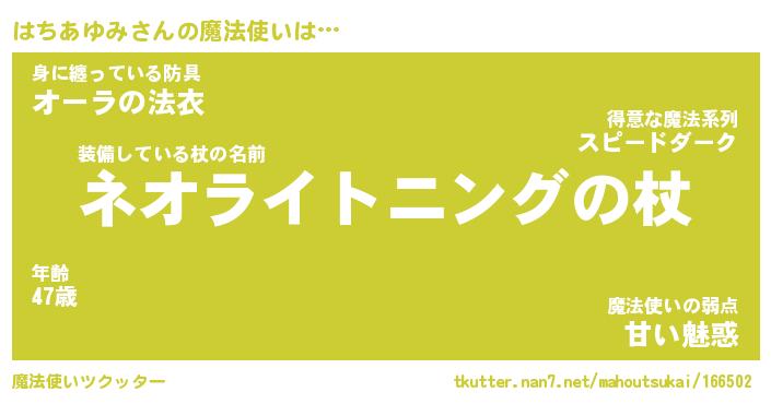 | 胡散臭い通販商品みたいなあだ名 | 『モテモテ間違いなし水晶球…その名も「はちあゆみ」』 |