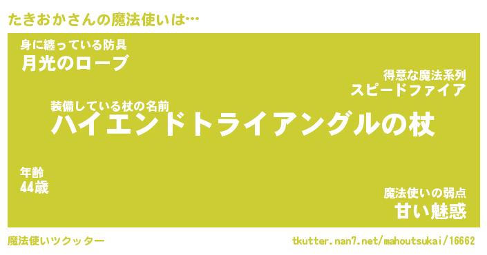 | ファンタジー風あだ名 | 『タキフェル』『エターナルタキオカー』 |