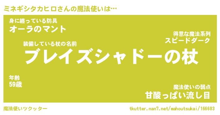 | 伝説のあだ名 | 『伝説の竜騎士ミネギシタカヒロ』 |