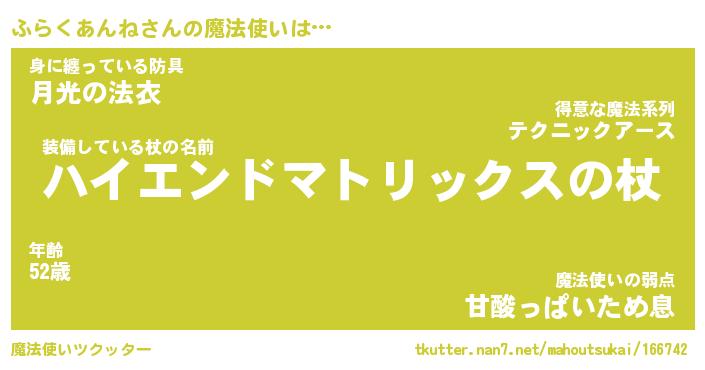 | 胡散臭い通販商品みたいなあだ名 | 『億万長者になれるブレスレット…その名も「ふらくあんね」』 |