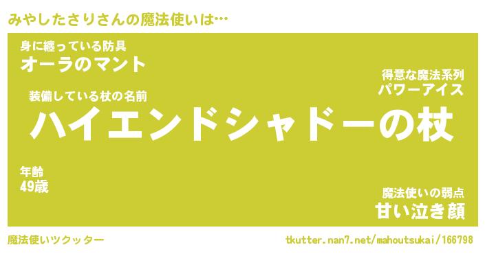| ヒーロー風カッコイイあだ名 | 『スーパーミヤシタサリ』『黄金騎士ミヤ』 |