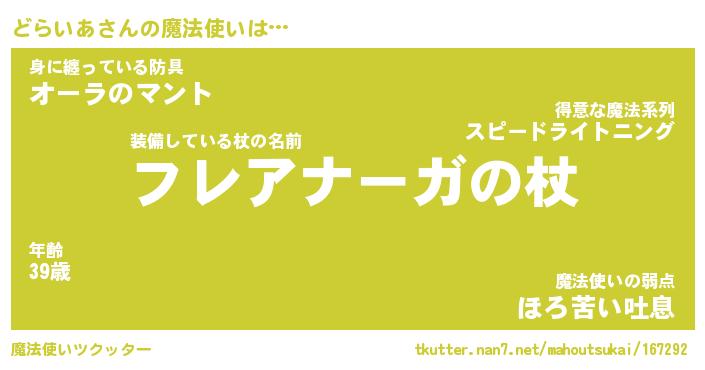 | ファンタジー風あだ名 | 『ドラフェル』『エターナルドライアー』 |