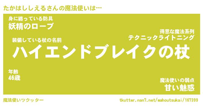 | 伝説のあだ名 | 『封印されし傭兵たかはししえる』 |