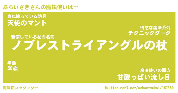 | ヒーロー風カッコイイあだ名 | 『スーパーアライサキ』『銀牙騎士アラ』 |