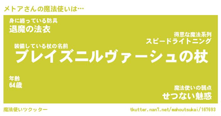 | ファンタジー風あだ名 | 『メトフェル』『エターナルメトアー』 |