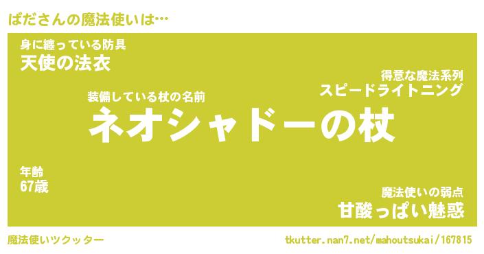 | ファンタジー風あだ名 | 『バダフェル』『エターナルバダー』 |