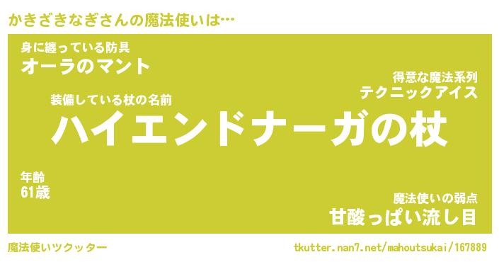 | 伝説のあだ名 | 『封印されしスナイパーかきざきなぎ』 |