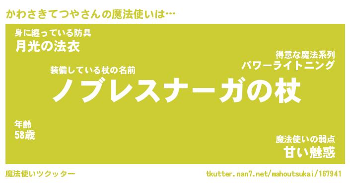 | 女子向けラノベタイトル風あだ名 | 『かわさきてつや姫と円卓の騎士』 |