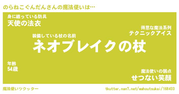 | ヘコむあだ名 | 『のらにゅー』『なまこ酢』 |