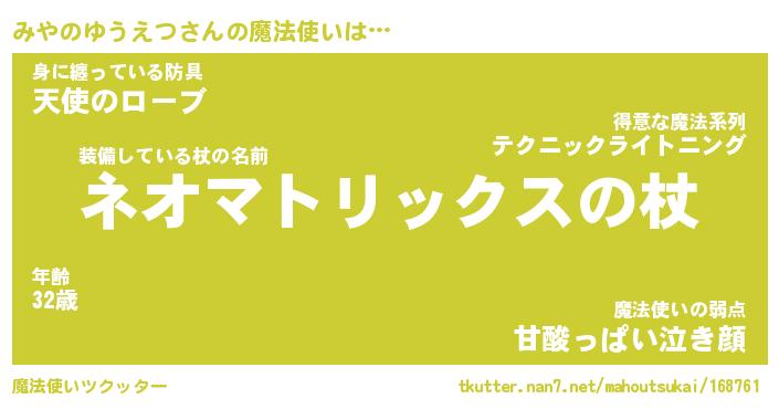 | ファンタジー風あだ名 | 『ミヤフェル』『ファントムミヤス』 |