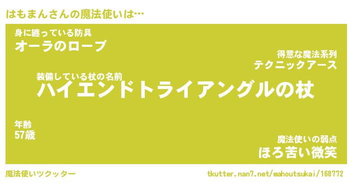 | ヒーロー風カッコイイあだ名 | 『スーパーハモマン』『暗黒騎士ハモ』 |